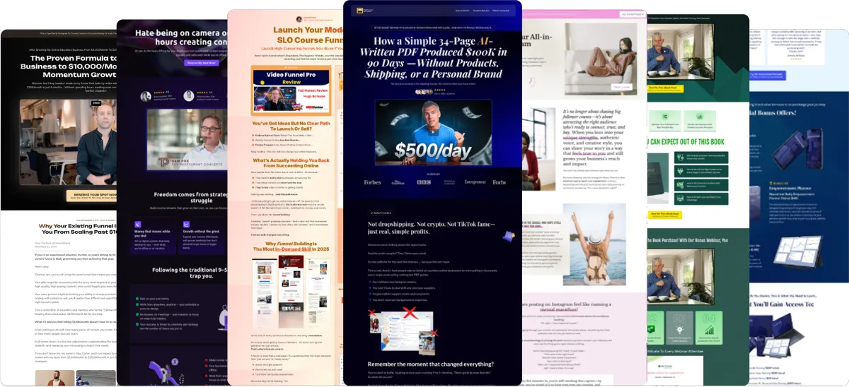 Whether you’re selling a course, booking coaching calls, running a webinar or challenge, selling a low ticket offer, or using a lead magnet — you’ll find a ready-to-launch funnel designed for your exact offer.